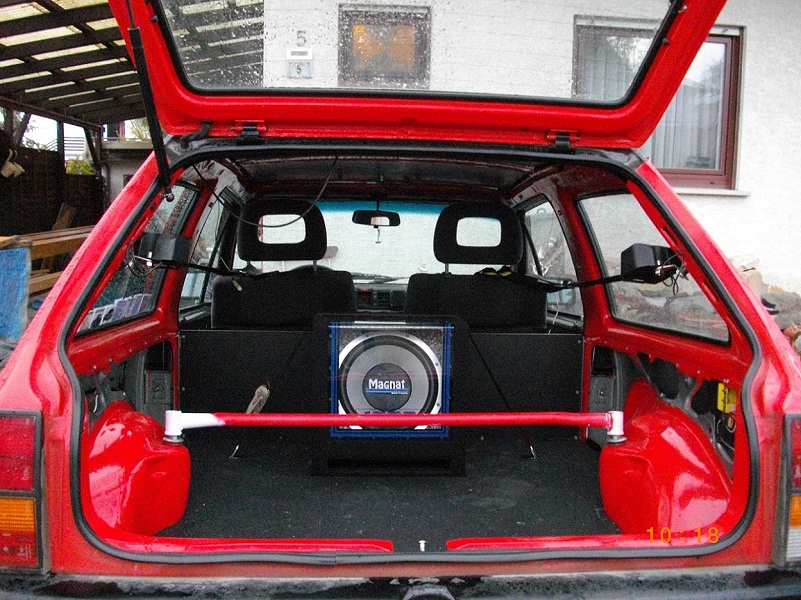 Sieht prima aus dein Kleiner, aber Dir hat da einer Zusatzgewicht in den Kofferraum gepackt :wink: :lol: Und was klebt denn da innen unterm Dach :?: