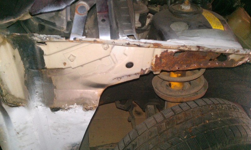 Radlauf auf der Beifahrerseite hab ich innen sowie außen ersetzt, und den Längsträger Fahrerseite repariert, und ein neues Batterieblech eingesetzt.