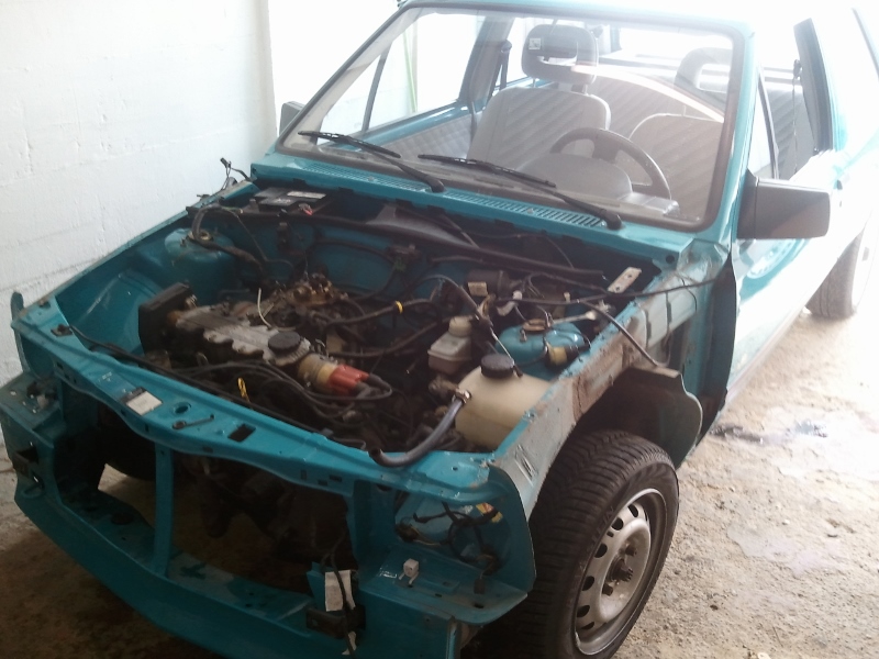 Das erklärt sich fast alles von selbst an dem Wagen. Antriebswellen müssen noch ab und Auspuff weg, dann kann der gute alte 1.2er von dannen ziehen. Hoffentlich geht das mit dem X14XE genauso unkompliziert. :roll:
