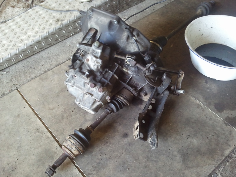 Und Zack, kam mir das Getriebe entgegen geburzelt. Das hatte sich an dem Sch..ß Blech verkantet.