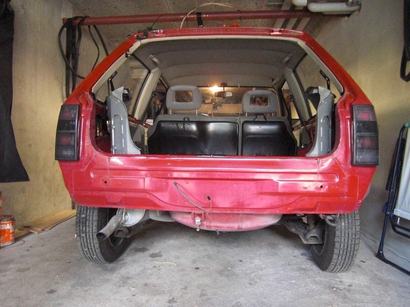Also Kofferaumklappe und Heckstoßstange abgebaut und innen nen Großteil ausgebaut!