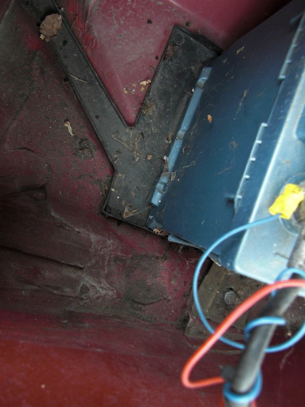 Eine der jungfräulichen Nieten an der Unterseite der Stoßstange Bild von der Frontmaske: So sah es, nach bissl Dreck entfernen, unter den Kotflügeln aus: Unter der Batterie: Mehr habch heut nich gemacht!