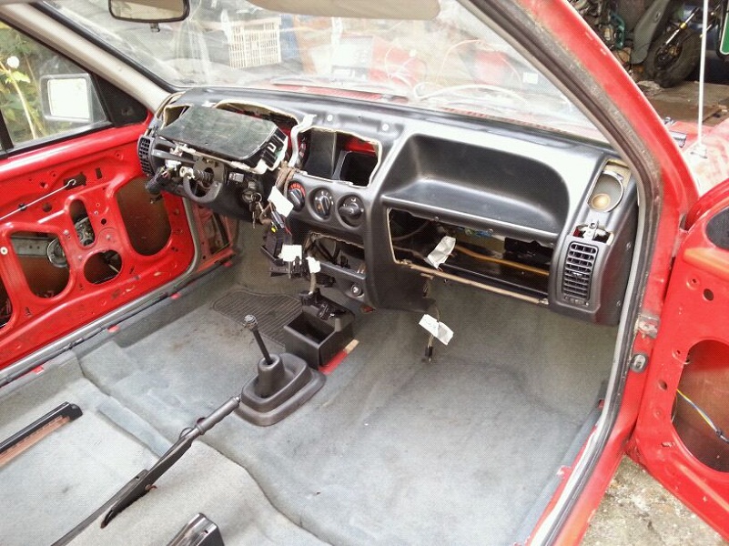 Hier mit schwarzen Armaturenbrett, fertig eingebauten elektr. Fensterhebern und fertigem Digi:
