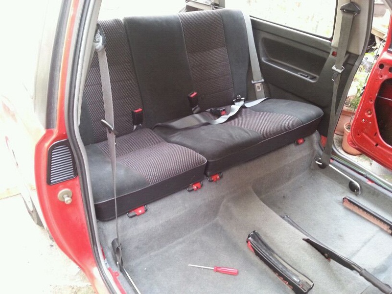 Schwarze Seiten, Schwarze Rückbank mit silbernen Gurten ( was ich sehr geil finde :-D )