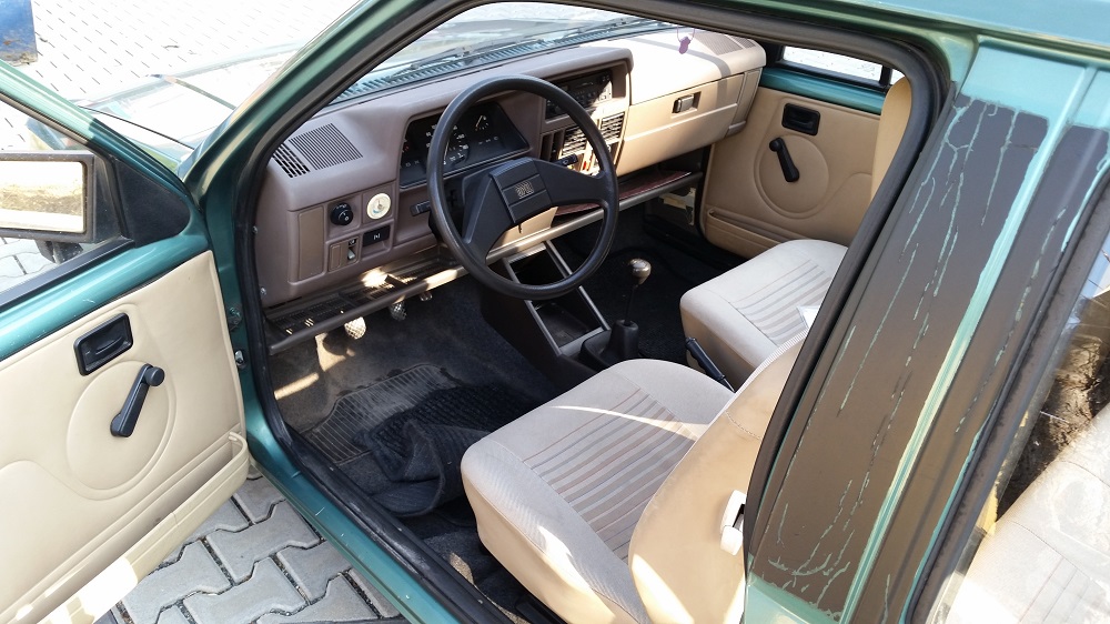 Die Innenausstattung ist eine normale beige Swing Ausstattung. Es gab die in Grau, Blau oder Beige. Die wenigsten haben wohl die beige genommen. Aber genau bei dem grünen Lack passt das sehr gut